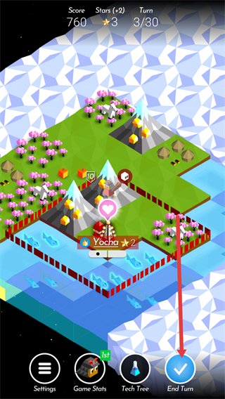 3、移动完成后确认当前回合操作无误,点击底部的EndTurn按钮结束本回合。