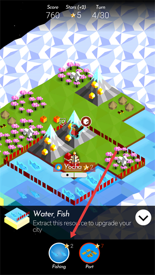 4、回合结束后获取对应资源,查看底部的资源提示,利用资源升级城市建筑。