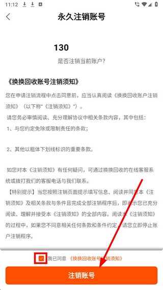 5、在页面勾选我已同意协议后,点击注销账号即可完成注销操作。