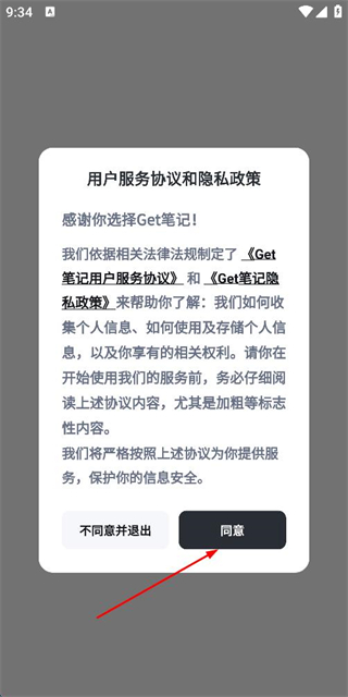 1、在用户协议隐私政策弹窗中点击同意按钮,进入登录页面。