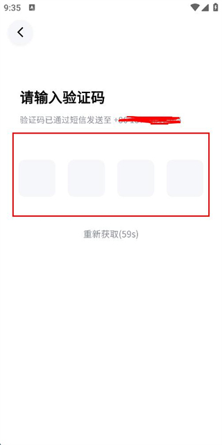 3、在输入短信验证码页面填写收到的验证码,完成账号的登录操作。