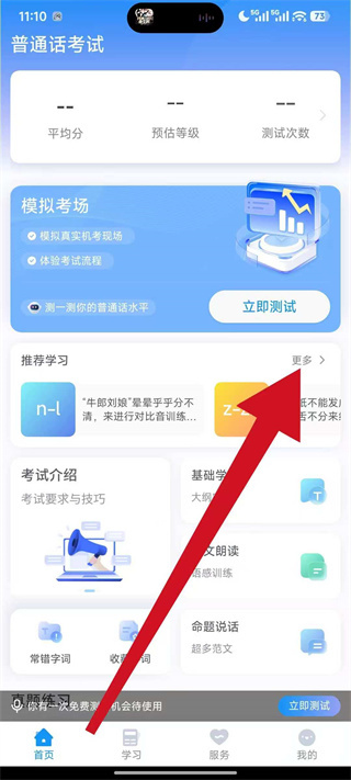 2、全真模拟考级实战体验,严格按照普通话水平测试大纲搭建模拟考试场景,自动生成测试等级与详细评分,彻底解决缺乏实战演练、考试流程不熟悉的痛点,提前适应考级节奏。