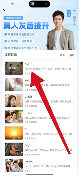 3、在课程目录页面,选择具体的发音课程,点击进入课程学习界面。