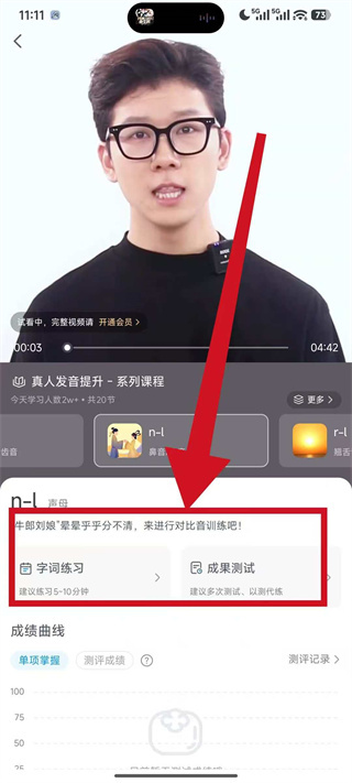 4、在课程学习页,可选择想要的功能,完成对应的普通话发音练习。