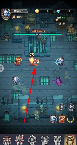 2、进入关卡后,自动操控英雄进行战斗,击败关卡内的敌人,完成当前关卡的挑战目标,等待战斗结算。