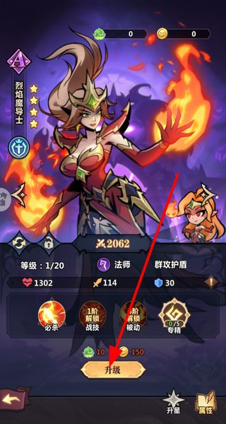 4、进入英雄界面,消耗对应的资源点击升级按钮,提升英雄等级,解锁更多技能,增强英雄属性。