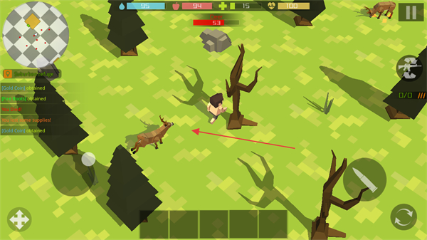 2、靠近野外生物如鹿,准备发起攻击获取物资。