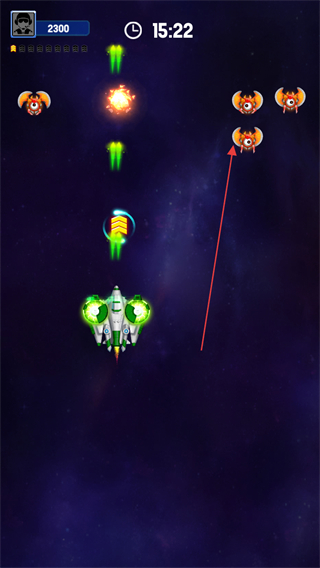 2、持续躲避弹幕、射击残敌,清空敌群后推进关卡。