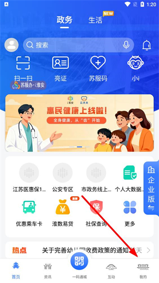 1、进入i淮安app后,找到底部我的选项并点击,可进入个人相关页面。