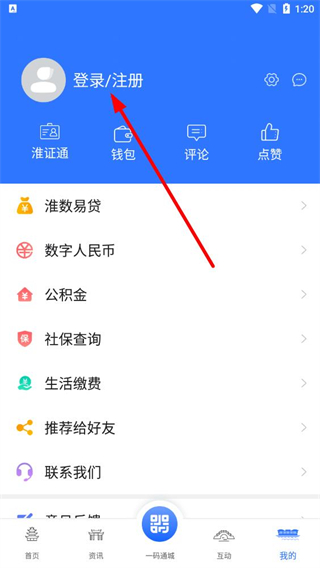 2、在个人页面中,找到登录注册选项并点击,进入登录注册对应的功能页面。