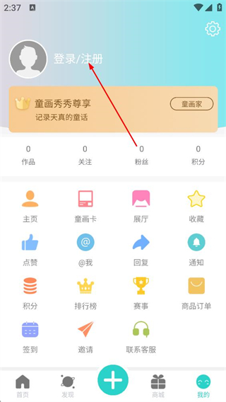 3、在我的页面,点击登录/注册按钮,进入登录页面。