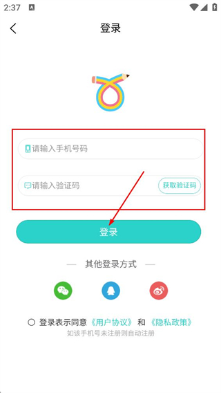 4、在登录页,填写手机号码,验证码,再点击登录,完成操作。