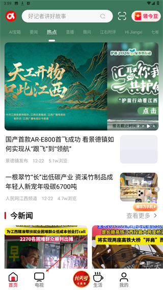 今视频最新版由原来的手机江西台全新升级,在这里专门为江西人民打造了很多专区,无论是看新闻、看电视、还是便民服务等都有涉及,让你一个app就可以了解江西的所有动态,在线还可以与本地人一起互动交流,还能免费点播很多视频节目,欢迎有需要的朋友下载使用。