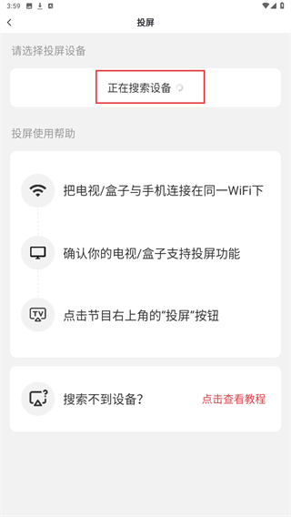 3、在投屏的页面内,显示正在搜索设备的提示。