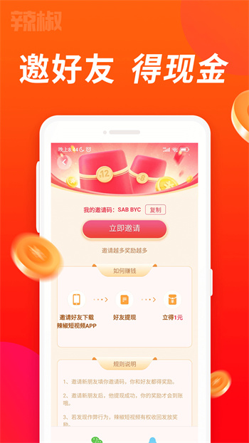 2、好友现金:好软件当然要不停的分享,快将视频分享给好友,还能获得大额红包哦;