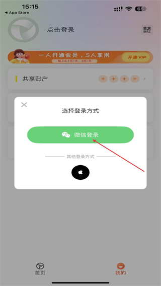 3、当页面弹出的登录方式中,点击微信登录的按钮即可。