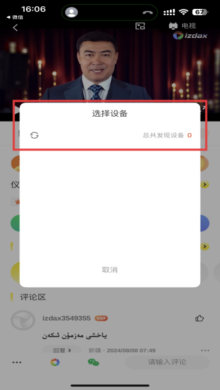 4、点击电视后,软件会搜索附近能够投屏的设备,过程中需要耐心等待。