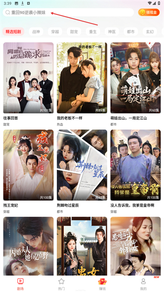 1、打开短剧之家App,进入时点击上方搜索框。