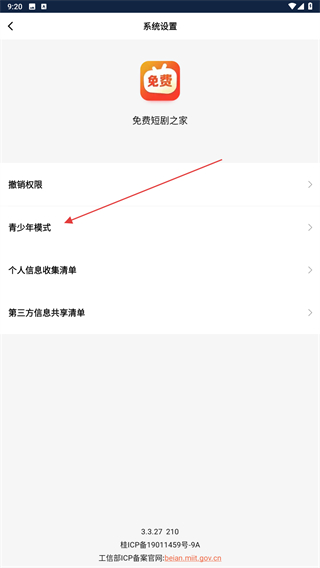 3、进入系统设置的界面内,点击青少年模式的功能按钮。