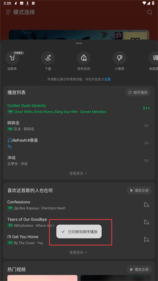 3、但界面显示已切换到顺序播放的字眼,表示已成功。