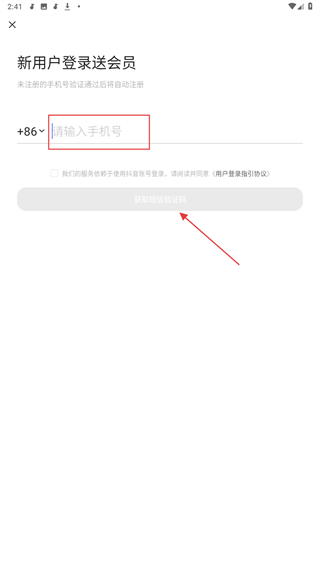 2、进入登录页面后,在输入栏填写你的手机号码,再点击获取短信验证码按钮。