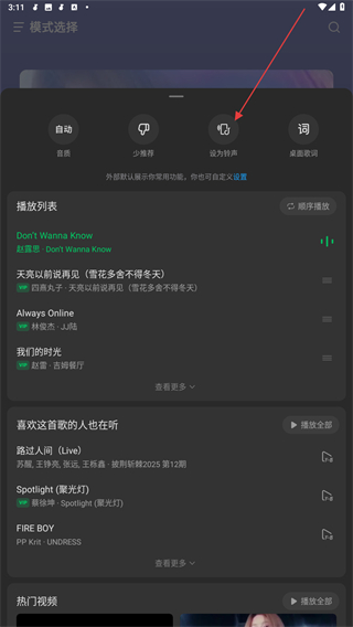 2、在下方弹出的界面内,滑动找到并点击设为铃声的按钮。