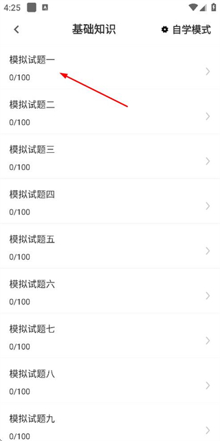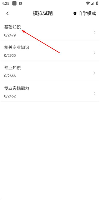 2、在分类页面点击基础知识选项,进入基础知识的模拟试题列表页面。