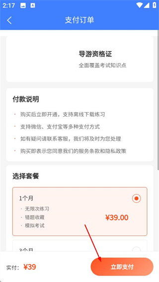 4、在支付订单页面完成购买后,即可开始答题。