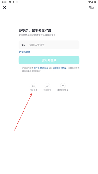 2、进入登录的界面内,用户需点击下方扫码登录的功能按钮。