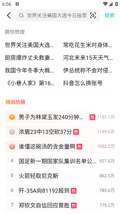2、在搜索框里面可以输入自己想要观看的视频内容,还能看到精选的热榜;