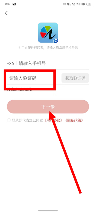5、在输入框,输入验证码,勾选后,点击下一步,完成注册登录。