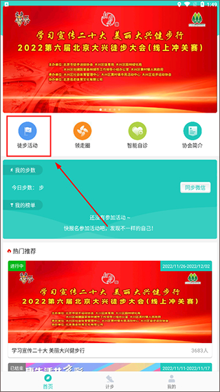 2、进入首页后,点击徒步活动选项。