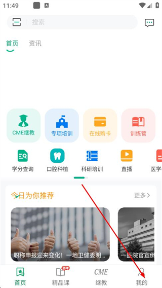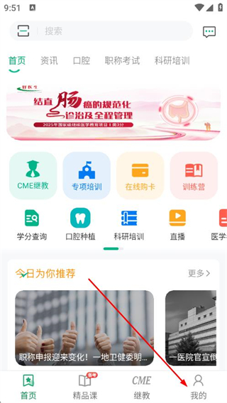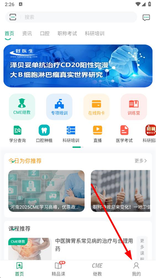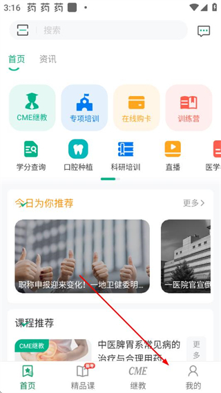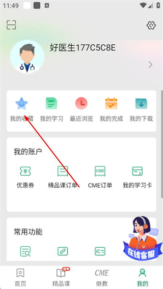 3、在我的收藏页面,可切换精品课、CME继教标签查看对应的收藏内容。