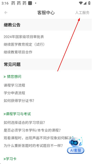 3、在客服中心页面点击右上角的人工服务选项,进入人工客服咨询页面。