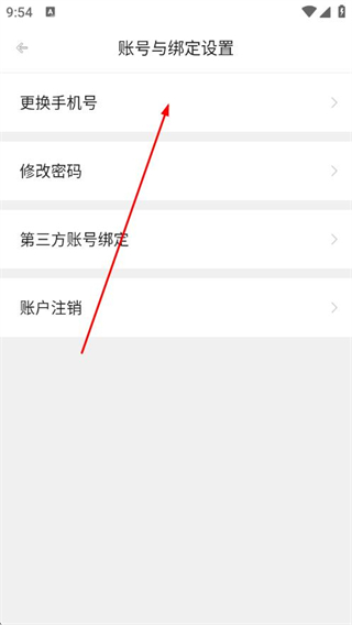 4、在账号与绑定设置页面,点击更换手机号选项。