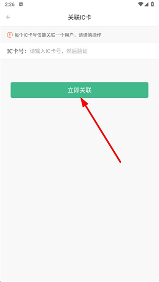 3、在关联IC卡页面的输入框中,准确输入IC卡号。