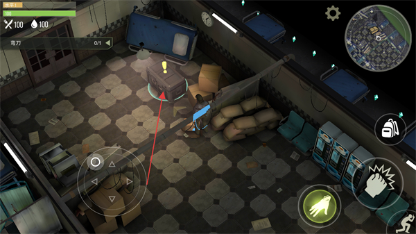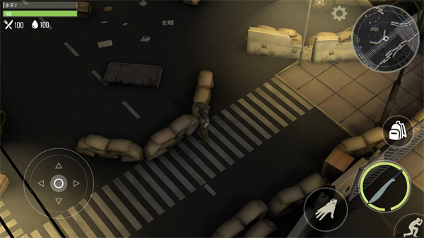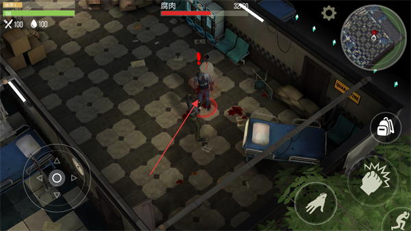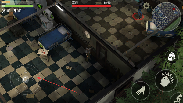 1、操控角色移动,躲避或攻击场景中的敌人如感染者,保障自身安全。