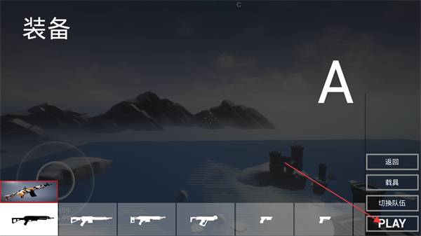 1、在装备界面选择武器,点击PLAY进入战斗。