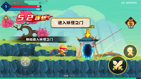 4、消灭所有妖精后出现妖怪之门,移动悟空进入门内,完成关卡。