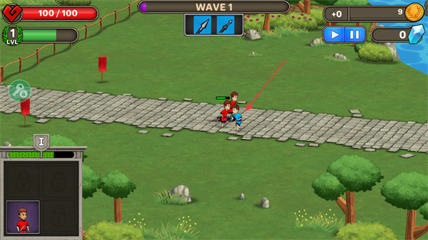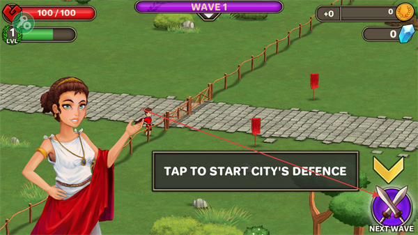 1、点击TAPTOSTARTCITYSDEFENCE按钮,开启第一波防御关卡。