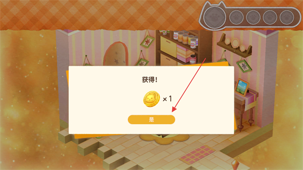 2、完成操作后弹出获得!提示,获得金币×1,点击是确认。