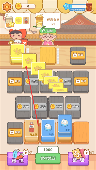 3、梯度化原料解锁机制,随着店铺等级提升与收益积累,可逐步解锁进口茶叶、新鲜水果、特色小料等高端食材,解锁更多隐藏饮品配方,丰富菜单吸引力。