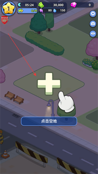 1、跟随指引点击空地,触发建造界面,准备建设建筑。