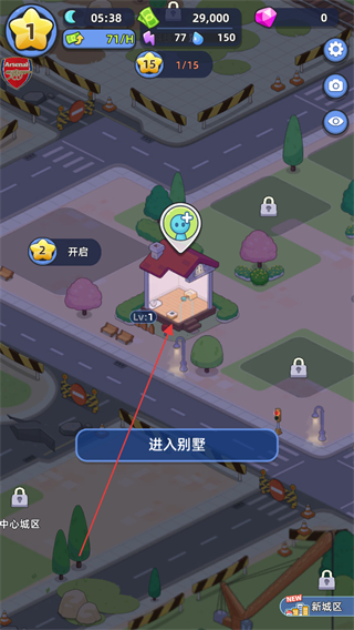 3、建筑建成后,点击进入别墅,进入建筑内部界面进行后续操作。