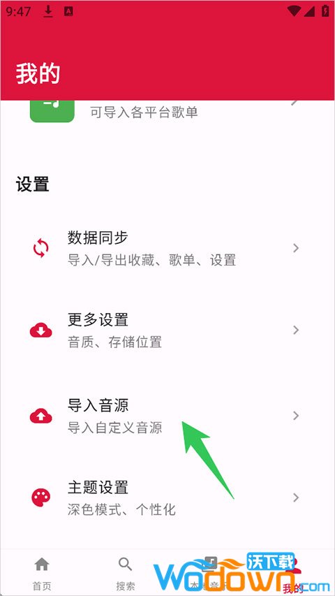 在【我的】界面点击【音源导入】,粘贴链接并点击【导入】。