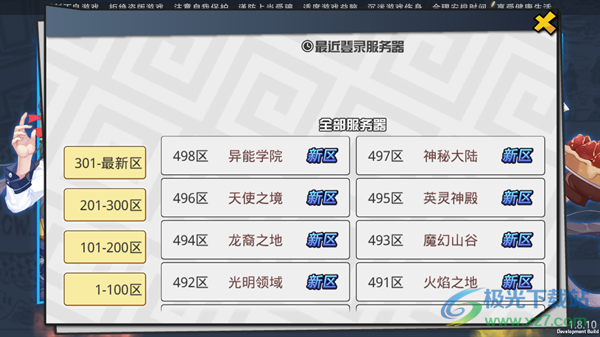 1、下载安装并进入游戏,选择合适的服务器。
