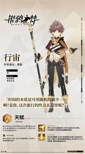 2、行宙的技能特点是【单体爆发】【高攻反击】,他的每次攻击都能额外叠加攻击加成,伤害值越来越强;同时,需要有好的输出,还需要先发制人,所以行宙不仅能自身获得敏捷,还能降低敌人的敏捷。怎么看都是一名主打爆发输出的强手。