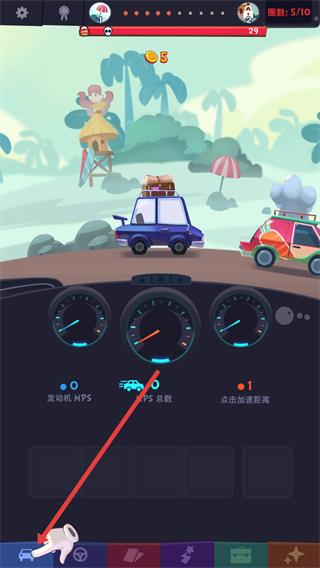 1、进入游戏后,点击底部【汽车】图标,进入汽车升级界面,可查看【小小挑战者】等升级选项,提升赛车能力。