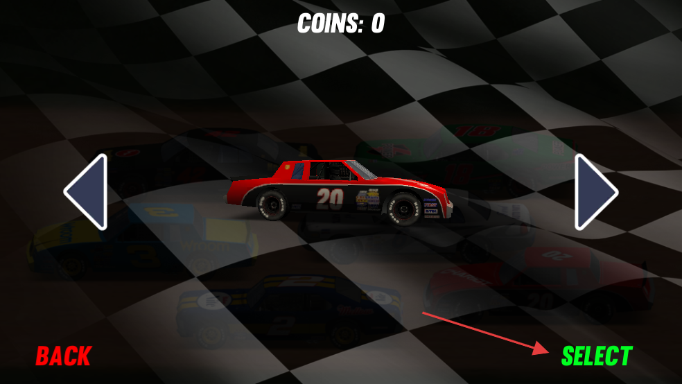 1、在选车界面,选择自己心仪的赛车,随后点击绿色“SELECT”按钮,进入比赛。