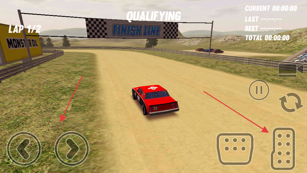 2、比赛开始后,用左侧方向按钮控制赛车转向,右侧按钮控制油门等操作,沿赛道行驶,开始第一圈比赛。